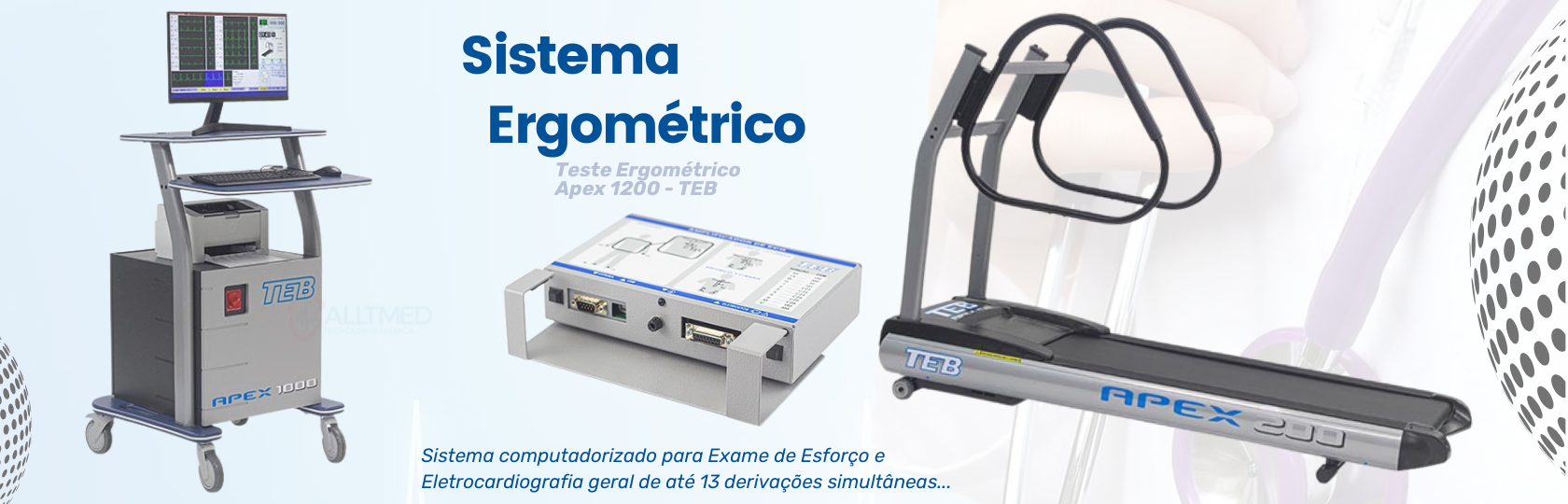 O Apex 1000 é sinônimo de confiança na ergometria brasileira. Conte com a Alltmed para instalação, treinamento e suporte técnico vitalício.